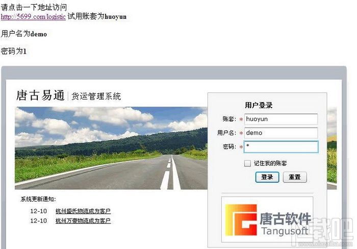 唐古易通免费货运管理软件终身免费,无任何功能数据限制!属于B/S网络版,服务器安装后,多台电脑即可使用。唐古易通物流货运管理软件充分结合了数字化管理及物流(运输)管理的特色,完全根据中小型物流企业的实际业务需求,是您保持在行业中的竞争优 势,实现企业管理现代化, 增加企业竞争力, 促进企业内部管理及人员、物资、资金等的合理配置及优化, 提高经济效益, 使公司能够持续稳定发展的现代化的物流信息管理系统的首选! 适用对象: 大中小型物流公司,货运公司,需要对各地分公司全面管理和监控