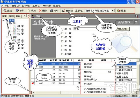▲ 针对学生宿舍管理工作方便性的需要,设计图形化操作界面,易于管理员操作;
