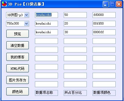 3D Pie轻量级的3D饼图制作工具。虽然用Excel或者GoogleDocs都可以制作出饼状图,但很多时候,我们只需要一个截图或一行代码,无需这样兴师动众。使用3D Pie创建好饼图后,你可以方便地复制代码加进你的网上博客中或者拷贝图片做成PPT数据图表。