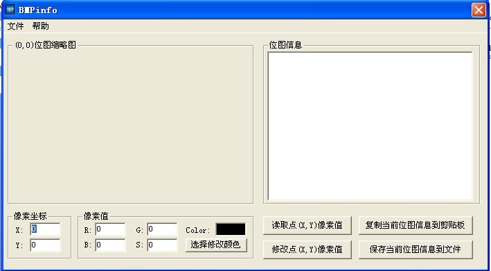 BMPinfo是一个主要用于查看位图信息的小工具,可查看包括位图文件基本信息,位图文件头信息,位图信息头信息等,也可以对位图的像素值进行修改。方便图像处理和相关编程时验证相关参数。目前支持二值图像,16色图像,256色图像,24位真彩图像和32位真彩图像,但后两者某些读取后显示其像素值颜色有误差。