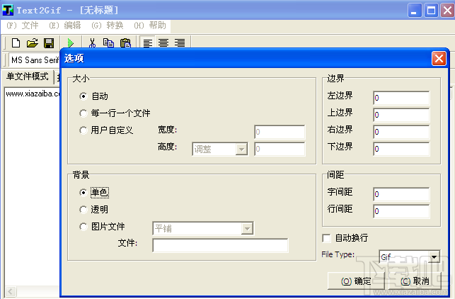 在Text2Gif转换选项中,需要输入数字的地方,包括宽度,高度,边界,间距都是以图像的像素点为单位的。