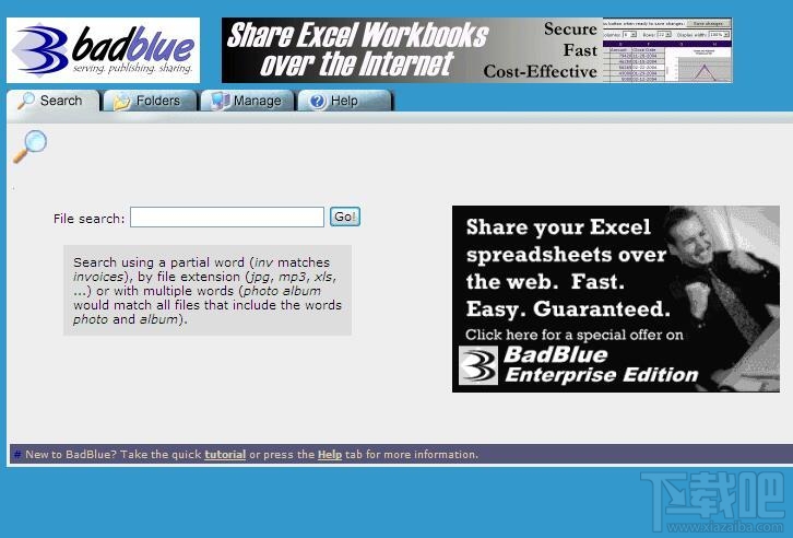 BadBlue PE是一款非常好用的网络共享工具。文件共享可以有很多种形式,BadBlue PE能够将你的共享目录加入Web功能,并给予搜寻功能。另外,BadBlue PE完全免费!
