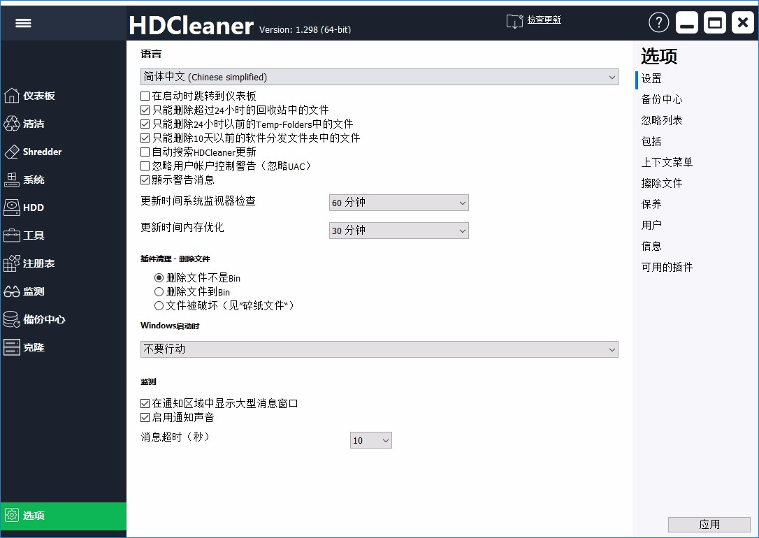 HDCleaner(硬盘清洁器)专门为你清除硬盘中无用且占空间的档案,HDCleaner主要为用户提供强力的磁盘文件与使用纪录清洁功能。例如:.temp、.bak、gid..经过扫描硬盘后,HDCleaner会将可删除的档案列表出来,让你自行选择要删除的部分,还支持 IE cookie、快取、浏览纪录、最近开启文件。删除的档案可以备份成 ZIP 压缩档。