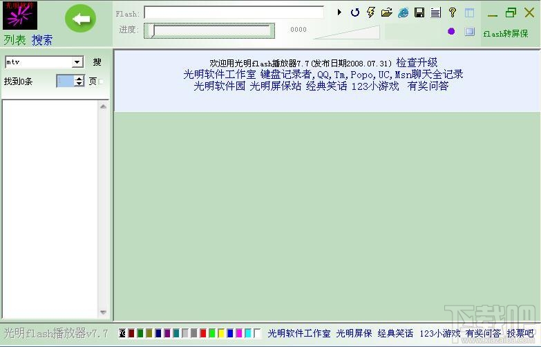 光明flash播放器是一个界面简洁,功能强大,集播放flash与搜索flash于一体的媒体播放工具。采用简洁实用的界面,突出flash影片重点。它支持播放本机flash文件,IE缓存flash文件和internet网页flash文件。
