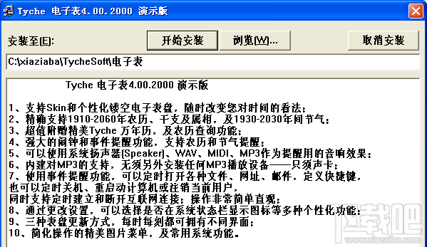 Tyche电子表透明的界面,如同电视节目右上角的电子表。鼠标路过时使用尹强的Calendar.ocx来显示农历。可以自由拖动,随意设置您喜欢的字符图片.Tyche 电子表的标准下载版本所包含的不同风格图片,可以满足您的一般日常使用。