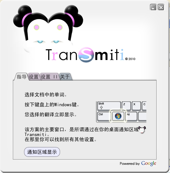 Transmiti是一款小巧实用的谷歌在线翻译器。运行后Transmiti会常驻在windows桌面的右下角,用户在 Word 或者其他软件里选中一段文字并且按 Win 键即可激活之,翻译结果会显示在一个可拖动的弹出窗口里面。