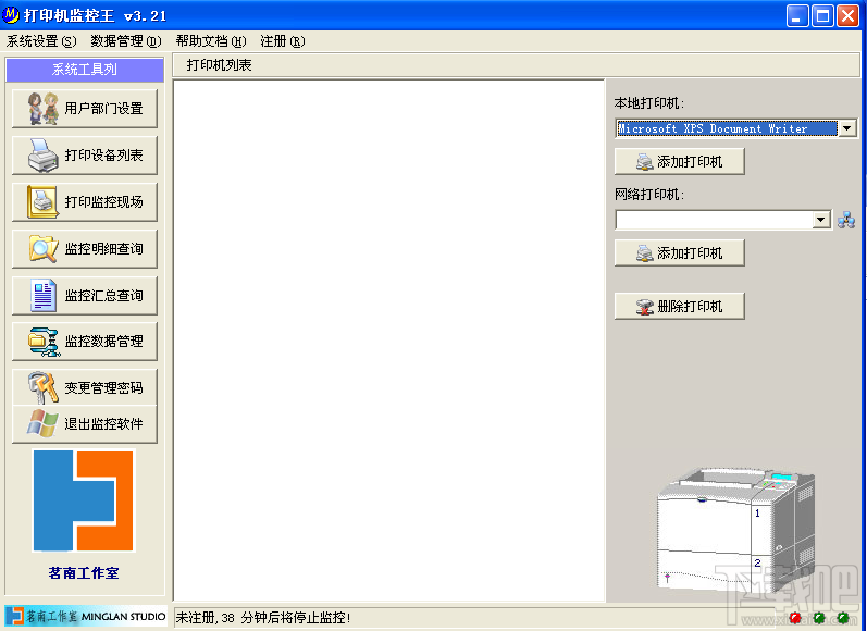 打印机监控王能监控到本机和网络上共享的打印机。监控到的信息包括:打印机名称,打印人,打印电脑,打印时间,打印档案名称,打印档案大小,打印档案页数及打印纸张类型及方向。能将监控到的信息进行管理,列印,查阅,从而达到节约公司资源的目的。
