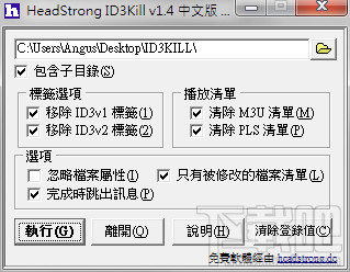 ID3KILL能帮你快速清除MP3标签程序,并可选择性的将ID3v1与ID3v2标签清除。提供选择您所指定的目录,如果需要,也可处理指定磁盘中的所有MP3文件,还能读取文件的标签,并复制到剪贴簿储存。