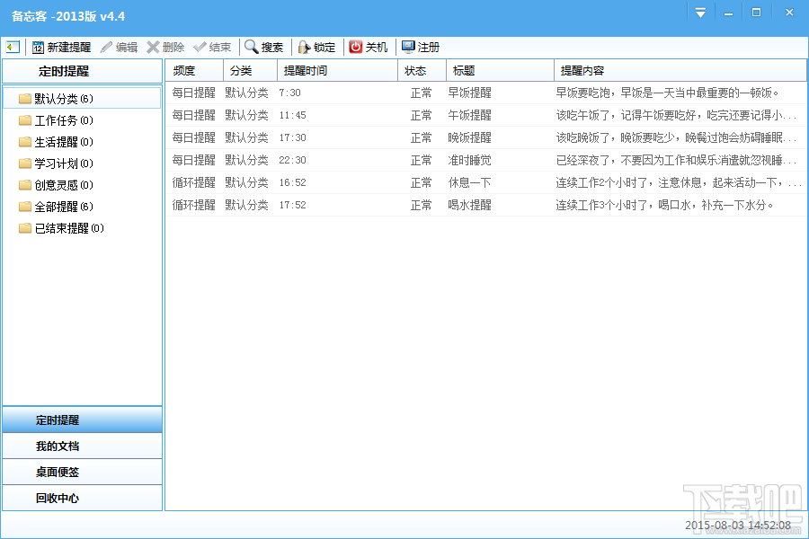 尚品备忘录是用户日常办公不可或缺的一款小巧软件,辅助用户轻松管理时间碎片,积累资料,高效完成日常工作。本软件还兼顾定时关机,桌面便签,文档资料收集存档,自编辑音乐提醒等强大功能。