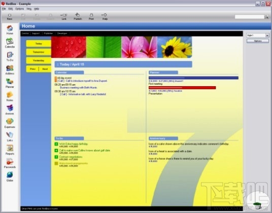 RedBox Organizer是一个个人信息管理的软件.具美观好用的界面。行事历,待办事项,计划表,通讯录,备忘录,连结管理,报告,定时提醒等。支持多人使用,网路发布精灵更可将行事历转换成美观的网页供上传!可从其它的管理程序输入资料,(支持txt和csv格式).不逊于Outlook98喔!