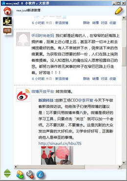 微聚是一款支持多用户、多平台的微博桌面客户端,目前支持新浪微博和腾讯微薄,在以后我们会逐渐支持更多的微博平台。微聚不仅支持绝大部分微博的操作,而且还提供了一些诸如多账号同时发布和转播,网络图片直接上传等犀利的功能。