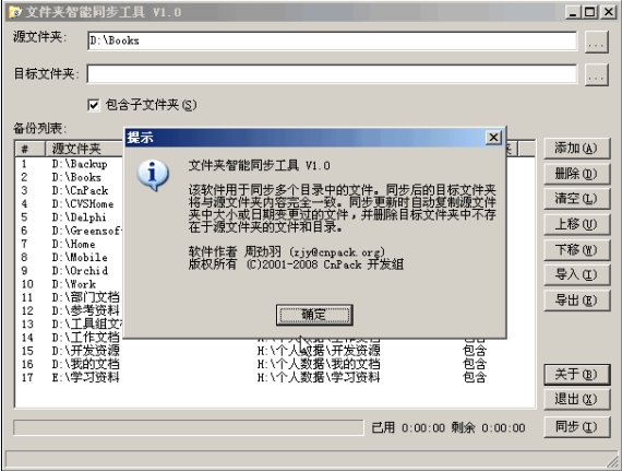 SmartSyn文件夹智能同步工具用于同步多个目录中的文件。同步后的目标文件夹将与源文件夹内容完全一致。同步更新时自动复制源文件夹中大小或日期变更过的文件,并删除目标文件夹中不存在于源文件夹的文件和目录。SmartSyn软件特别适合经常使用移动硬盘或网络共享目录来备份大量数据的用户。