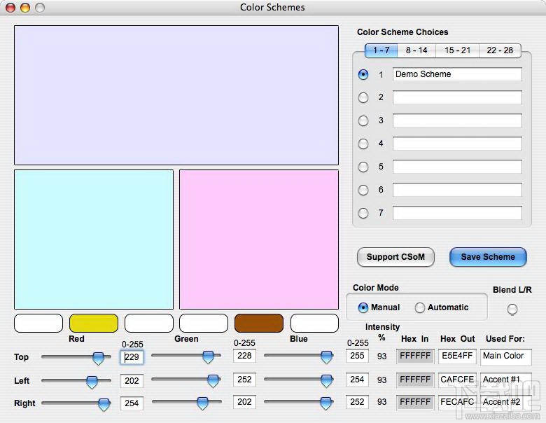 在数码时代的电脑里,颜色是无所不在的。我们可能会遇到这样或那样的配色问题:如何做出一份颜色整齐漂亮的商业文档?如何让自己网页的颜色和谐悦目?如何让公司的海报吸引更多的眼球?如果你没有太多时间去研究配色理论,也不想花太多钱去寻求专家的帮助,那么Color Schemes 可能是你较好的选择!Color Schemes 收录有上千种常用颜色的配色方案,可以随时方便地查询你所需的配色,就象你书架上的字典一样,但它比字典更快捷更方便!