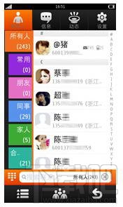 【功能介绍】 1、联系人管理:智能搜索、联系人分组、名片转发、群删联系人。 2、短信管理:对话式消息展现、支持短信群发、短信预览等。 3、智能拨号盘:去电号码搜索双向匹配,新号保存提醒、IP拨号、归属地显示。 4、好友动态:文字、图片、相册分享心情。 5、备份功能:号码备份/恢复、变动智能提醒。 6、桌面图标:通讯录、拨号器快捷键图标。 7、软件设置:IP前缀、网络接入点、开机自启动、归属地设置及模块自定义等。