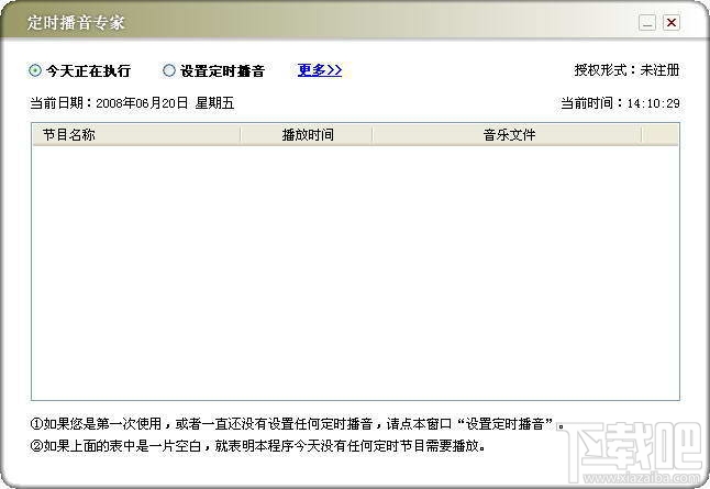 全自动定时播放软件,可以自由设置定时播放的声音和音乐,以及软件的播放时间。