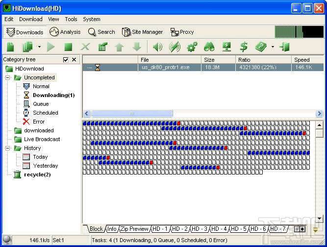 HiDownload(HD)是一款可以从Web,FTP站点,MMS和RTSP站点下载文件的下载管理工具。它可在Windows 9x/ME/NT/2000/XP 系统下运行。允许你以最快的速度下载电影、音乐和Mp3等文件,同时具备搜索mp3,分析MMS/RTSP下载地址的功能。它还有一个友好的操作界面。 其特点:HTTP/FTP 多线程续传下载;支持MMS协议;支持HTTP/FTP/SOCKS 代理;可灵活地进行多文件下载;与浏览器集成;下载文件分类管理;强大的网络分析能力;支持下载Flash等图片等等。