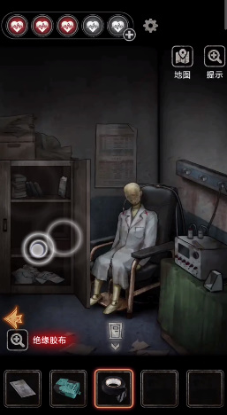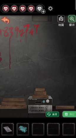 进入物理治疗室:返回3F走廊,使用钥匙打开物理治疗室的门,点击地上的收音机得到道具,点击右侧机器,发现需要输入四位阿拉伯数字密码。机器上方有一张画了红蓝色骰子图案的纸,根据纸上的提示输入密码。
