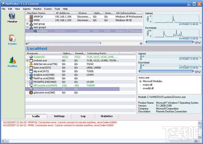 越来越多的用户已经连入宽带网。机器长时间连在网上,使用户特别担心网络安全问题。虽然目前有很多个人防火墙系统可供选择,但并不能消解用户的担忧,尤其是当网络速度变慢时,用户总会想:“会不会有什么程序在后面偷偷干什么事?”。用户也会关心ISP到底有没有按照承诺给自己带宽。使用NetPeeker,用户可以很方便直观地看到目前有哪些进程在对外访问,访问速度是多少,以及总的速度。