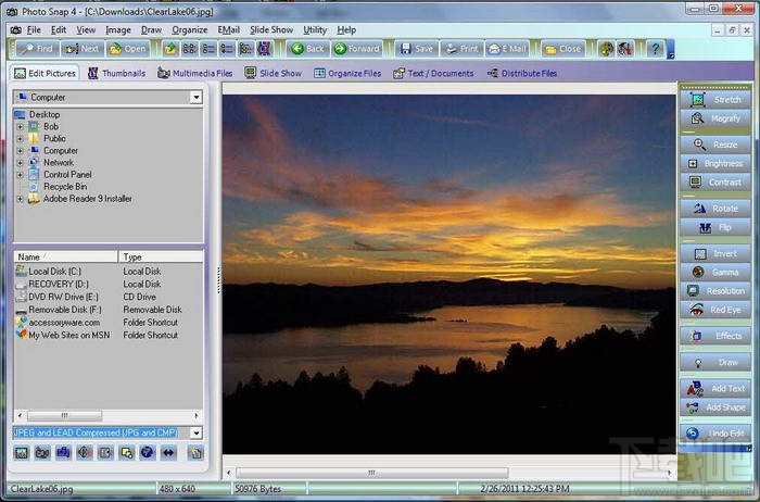 Photo Snap是数码照片浏览器/编辑器与搜索,打印,整理,和电子邮件功能。播放多媒体文件和组织多个播放列表。伟大的幻灯片和批量复制,移动,重命名和图像转换实用程序。从视频创建花絮,并转换视频和图片格式。