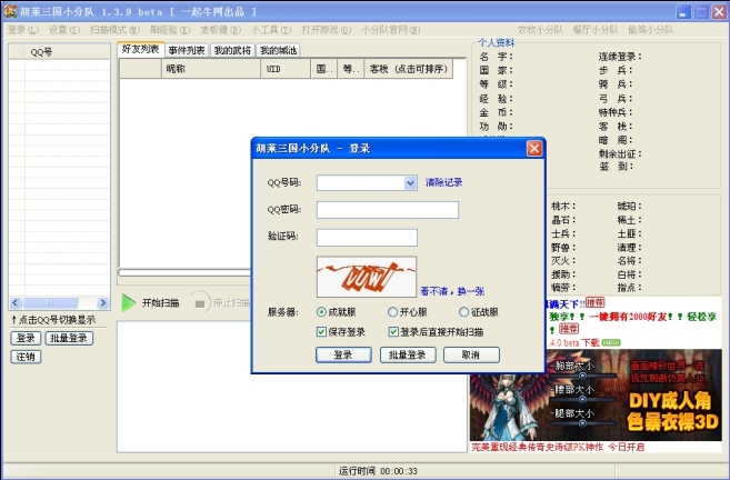 胡莱三国小分队1.3.9 beta —— 胡莱三国辅助程序 2012.4.231. 大转盘自动抽奖