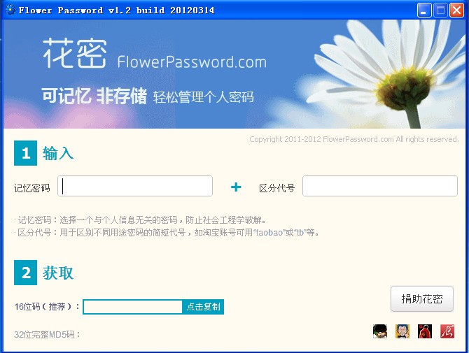 第三步:花密将记忆密码+区分代号 生成 最终密码。这个16位强密码就是你要使用的密码。
