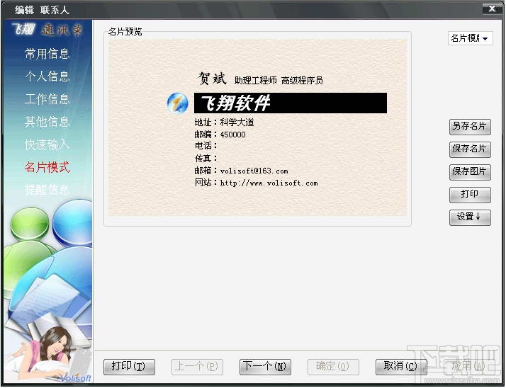 · 支持联系人名片自动生成、编辑和打印功能。