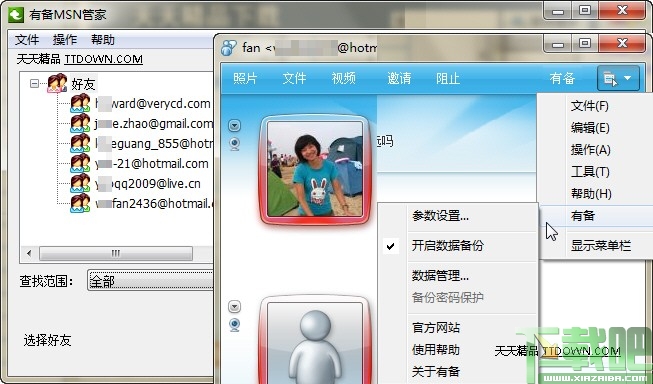 有备MSN管家是一款基于云计算技术的MSN专用辅助软件,可实时自动备份、一键恢复及全面管理MSN聊天记录、表情和传输资料,安全私密、绿色便捷,是广大MSN用户的必备之品。
