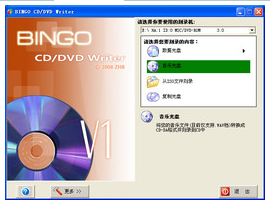 BINGO CD/DVD Writer是一个类似于Nero的CD/DVD光碟刻录程式(User Manual),目前的版本实现了CD/DVD光碟部分的刻录功能,当前版本的主要功能如下: