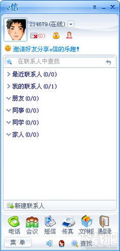 e信就是统一通信:融合电话、传真、会议、短信、邮件、即时通信、网络文件柜、网络通讯录于一体。e信3.2版本优化通信记事查询功能,通信记事查询界面,修正来电弹屏的提示功能,通信记事中导出记录,增加了导出提示,增加电话会议中的自动匹配姓名功能及传真资费修改、自动续费功能加载等。