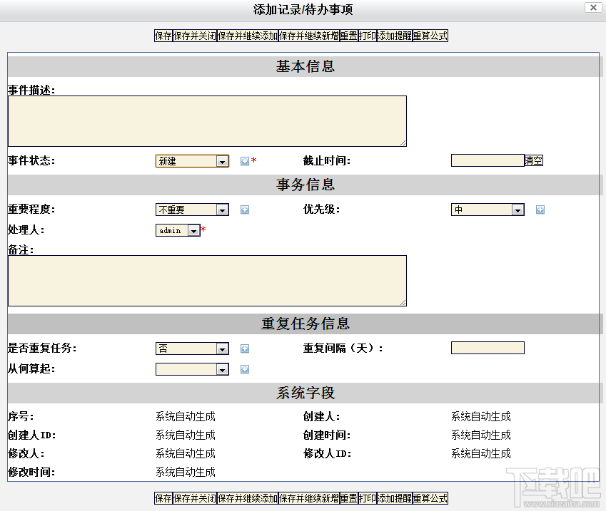 基于魔方应用商店运行的办公事务管理系统,可以不断改进完善,功能包括: 收集自己所要处理的大小办公事务。 对自己所要处理的所有事务进行时间计划、优先程度排序,使用直观的方法标识。 设定重复任务等,根据自己的所有任务计划自动生成每日待办事项。 根据预设时间计划,对自己和相关人员进行待办事项提醒预警。 更可根据人员岗位级别,灵活定义上下级的监督机制,提醒领导监督下级的工作进度。 通过办公事务管理系统,提高工作的计划性和有效性,产生效益。