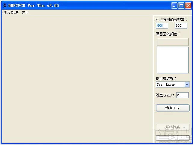 1.选择需要转换的图片。 2.用CTRL+左键点图片上需要转出来的颜色这时可以看到颜色值已经添加到颜色列表。(如果需要删除列表中的颜色用CTRL+右键点颜色列表就可以)。 3.点击左上角的“转换”按钮后需要选择一个保存的PCB或ASC文件名然后就会进行转换了。 (语言表达能力不好,反正我自己是知道怎么用了,如果有不懂的地方大家试着自己摸索一下,不会对电脑有损害的 ^!^)。 软件介绍: 图形界面的BMP转PCB软件,用于抄PCB板,转出的文件只能用PROTEL软件打开。 X,Y方向的分辨率是对应扫描的分辨率。保留区的颜色是指要将图片中的什么颜色输出为导线。BMP图象格式不需要为单色完全实现彩色转换。