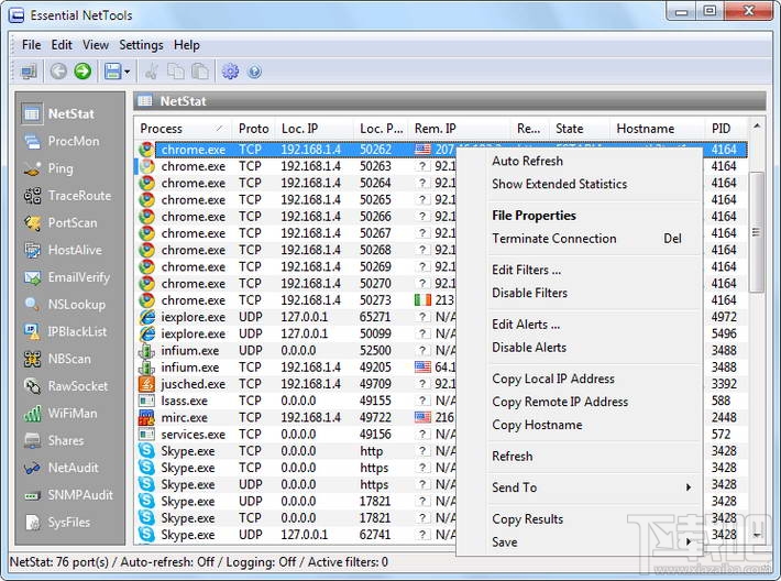 Essential NetTools是一套功能完备的网络即时监控软件,提供使用者局域网络中最即时的相关资讯,另外也可以了解到目前正在操作电脑的对外网络连结状况,如果有骇客想要入侵的话就可立刻一目了然。