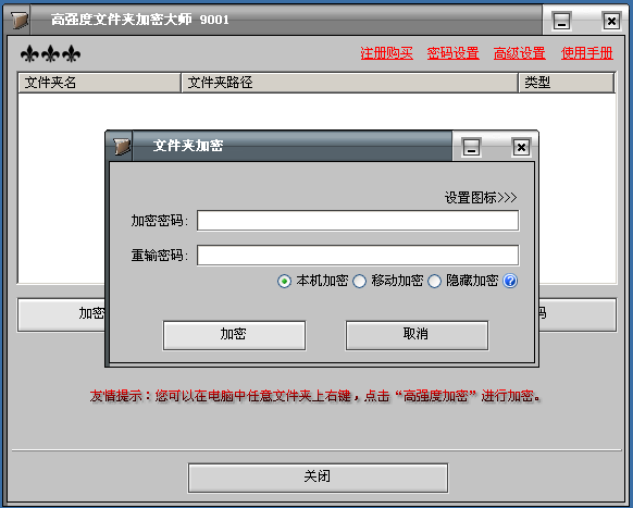高强度文件夹加密大师一款专业的文件和文件夹加密器。