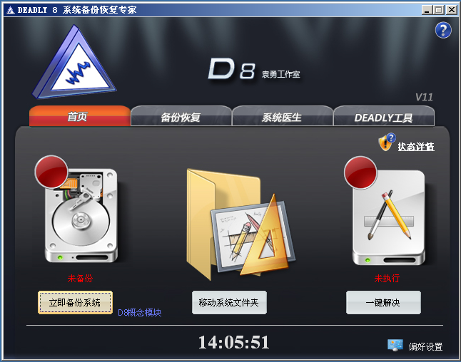 DEADLY8"系统备份恢复"完全、全自动备份恢复系统采用完全智能化的设计,使得初学者也能方便的备份、恢复您的系统且支持多硬盘、多系统、多种分区格式(文件系统如:FATFAT32 NTFS)备份路径可以自由设置"、支持多介质启动" 支持 硬盘 光盘 U盘 启动 DEADLY。