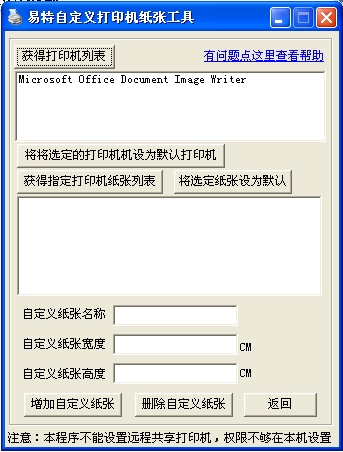 打印机纸张自定义工具运行PrintSetup.exe,点击获取打印机列表,会显示本机所有的打印机,选中某台打印机可以设置为默认等,这些都不是主要的。重要的是自定义各种尺寸的纸张,因为很多打印机不支持自定义纸张大小,特别是早期的针式打印机。