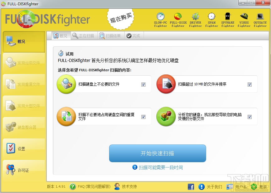 FULL-DISKfighter 是一个快速、强力且易于使用的工具,通过清除那些过期的、容易引起错误的垃圾文件,从而释放更多的宝贵磁盘空间。