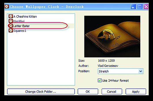 Dexclock是一款来自德国的报时兼系统美化软件,与其他同类软件不同的是,Dexclock可以将当前的系统时间和日期以非常独特的方式嵌入桌面背景。并且动态更新,美观而不失实用。