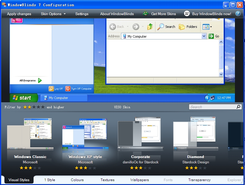 Window Blinds能够轻松改变操作系统外观的超强工具。尤其是对全体 Windows 应用程序窗口的更改,安装和运行非常简单。安装后可以整合于操作系统中,而且该软件是目前惟一获得微软许可的第三方系统美化软件,你可以在显示属性中选择多种不同的视窗风格。