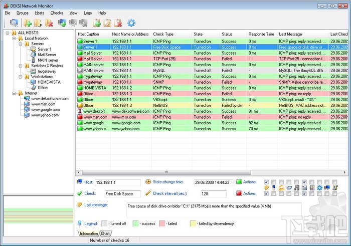 DEKSI Network Monitor 用来管理你的网络状况及网络监测的软件,你可以监看有哪些服务器服务正在开放中及其效能,也会发出网络错误讯息来提醒你,它可以透过电话或呼叫器的模式来告诉你网络出了状况。