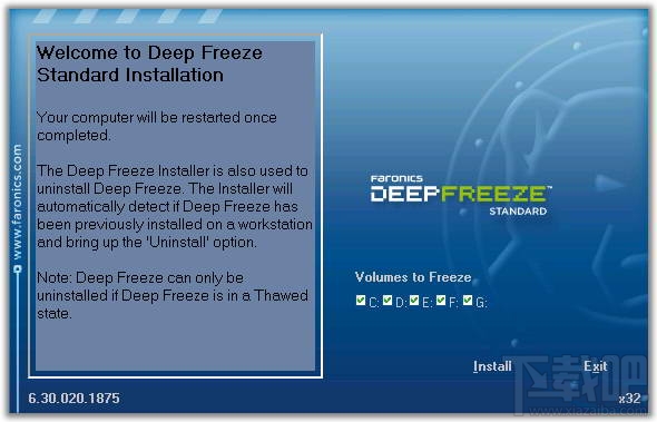 Deep Freeze是一个系统的保护软件,不论什么原因你的系统出现了故障,它都可以快速的恢复到你原先的状态和设置。它会随时记录你的操作,当前打开的文件,运行着的程序和各项设置。