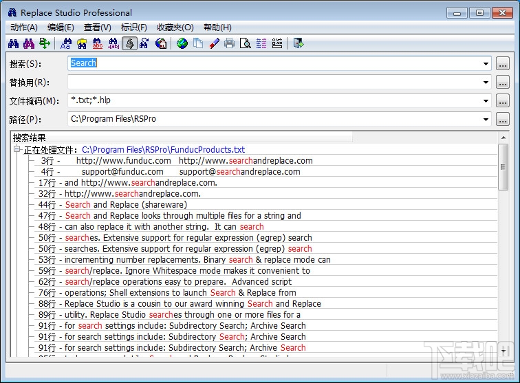 Replace Studio Pro(Replace Studio专业版)官方中文版是一款功能非常强大的内容查找与替换工具。别看图它图标和界面这么图,但每个功能都很强大和实用,能实现批量搜索文件内容和批量文件内容替换。Replace Studio Pro也可以搜索 Zip 文件中的文件,并支持特殊字符条件表达式的搜索,以及以脚本文件(Script)进行搜索和替换,也可以以二进制的表示方式做搜索和替换。而对搜索到的文件也可以针对内容、属性、及日期进行修改或者启动关联的应用程序。从所提供的功能来讲,该Replace Studio Pro可以说是同类软件中最出色的。