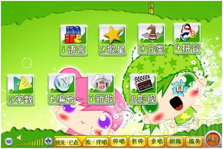 小容量、大空间、高品质:采用新的压缩编码格式制作,使得单个硬盘(按80G计算)可以存储超过六千首卡拉OK歌曲,音质画质可与LD媲美。 短、平、快:单机结构:无须网络设备及布线,即装即用,工程周期短;系统独立运行,互不干扰,平稳可靠;由于系统在本地运行,不受网络宽带的限制,所以运行速度极快。 升级简便:可根据需要定制歌库,方便增减歌曲,并采用智能识别加歌工具,自动识别添加新歌到歌库内。 扩充简单方便:需插接10M网卡即可扩充点菜点酒水功能,特别适合旧场改造;如加装IC卡读写器,就可变成可计时收费的量贩式卡拉OK机。 零网络投资、零网络故障、零技术要求:独立式单机系统,无须昂贵的网络设备,本点歌机在应用现场完全傻瓜式的安装,如碟机一样,将音频接到功放、视频接到电视,插上电源开机即可使用,无需专业技术人员操作。 操作简便:友好直观的操作界面非常方便操作员使用。