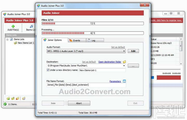 Audio Joiner Plus可以把不同格式的音频文件合并到一个文件中,使用简单、合并快速。