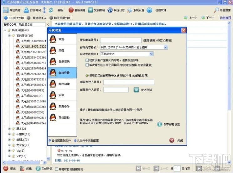 飞迅QQ聊天记录查看器 解压缩密码123456 客服QQ:435803921 飞迅qq聊天记录查看器,较好用的QQ聊天记录查看器软件.同步更新,永远支持QQ新版。 敬告:因此类软件属监控软件,可能会被杀软误报,请点击添加信任后既可正常使用, 软件是收费软件,所以绝对不含有除软件本身功能以外其他任何破坏电脑的行为,下载用户可以放心使用 。 功能简介 可以查看你电脑上的所有QQ的聊天信息,包括软件安装之前的记录 ,对于安装之后的聊天记录即使一边聊一边删,也可以监控得到。