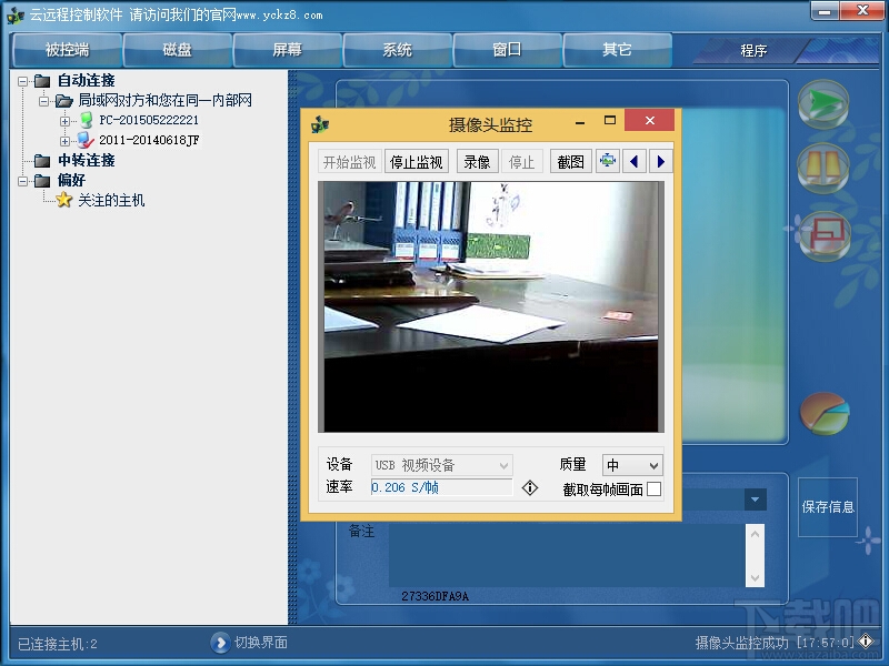 主要功能: 1、远程监控电脑屏幕(屏幕墙可同时监控6台电脑的屏幕)。 2、上网行为监控,可以有效监控员工上班做了哪些事有统计图。 3、文件管理,可以远程办公修改文件、删除等操作。 4、dos命令,这个功能不用多说了基本上都用得到。 5、视频监控,(跟屏幕墙一样可以同时监控6台电脑的视频)。 6、语音监听,如果有麦克风的电脑可以监听到对方说话。 本云远程控制软件由云控公司开发,功能强大通过各大杀毒软件认证主要360、金山、qq管家不会报毒,真正做到合法的免杀远控软件。 兼容系统:xp、2003、window7、window8、window10.