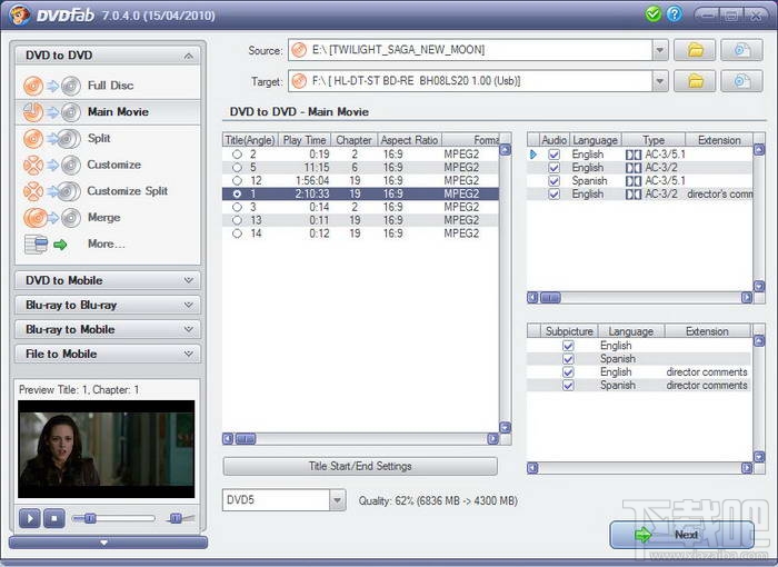 DVDFab是第一个全功能的蓝光复制/刻录软件。它有4种复制模式,你可以通过一步或者几步操作就能复制任何蓝光DVD到BD-R 或者电脑硬盘。