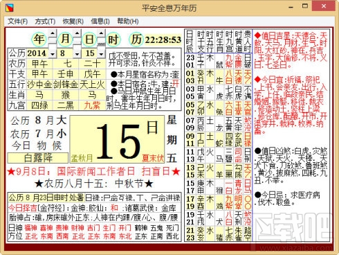 平安全息万年历软件是国产第一部电脑全息万年日历,充分满足了华夏民族有文明史来一直推崇的“择吉”民俗需要,可十分快捷地查阅公历、农历、干支(四柱)、生肖、五行、九星、黑黄道、建、宿、星期、大小月、每日物候、24节气,公、农历节日,值日吉星、神煞及方位、时辰,日、时宜、忌,人、事、时之间的“合、冲、刑、害”关系,查询中国历代纪元,邮政编码,国内外长话区号,古代趣味解梦、杂占。有自动闹钟功能,正点起闹、定时叫闹。可打印择吉日历。是天文、地理、历史、建筑、《易》学、中医、理学、民俗、人文、古文明研究者的利器,也是广泛农、工、商、学、医人士的优秀司时工具。古人认为,历书中的“天干、地支”纪时法记录有宇宙变化的一切信息,因此,本软件能提供指导您行动的有用信息!