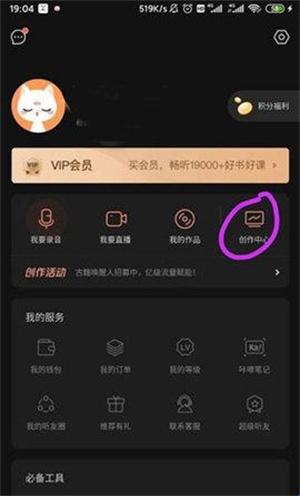 2、登录之后,点击右下角的账号,进入个人页面点创作中心。