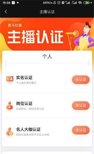 4、进入通道后会有身份认证,主播认证等,你需要填写真实信息。