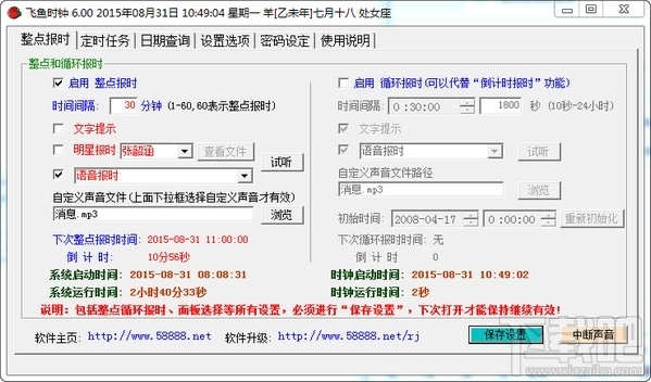 2、可随意设定报时声音,本软件为您提供“真人女声”、“铃声”、“挂钟声”等多种选择,您甚至可以自定义mp3作为提醒音乐。